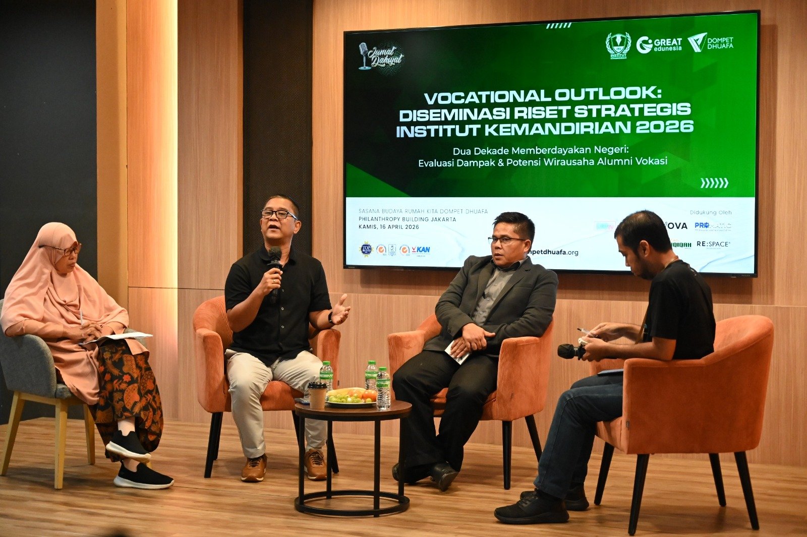 JAKARTA – Institut Kemandirian menggelar kegiatan Vocational Outlook: Diseminasi Riset Strategis 2026 bertajuk Dua Dekade Memberdayakan Negeri: Evaluasi Dampak & Potensi Wirausaha Alumni Vokasi pada Kamis (16/4/2026) di Aula Sasana Budaya, Gedung Philanthropy, Jakarta.